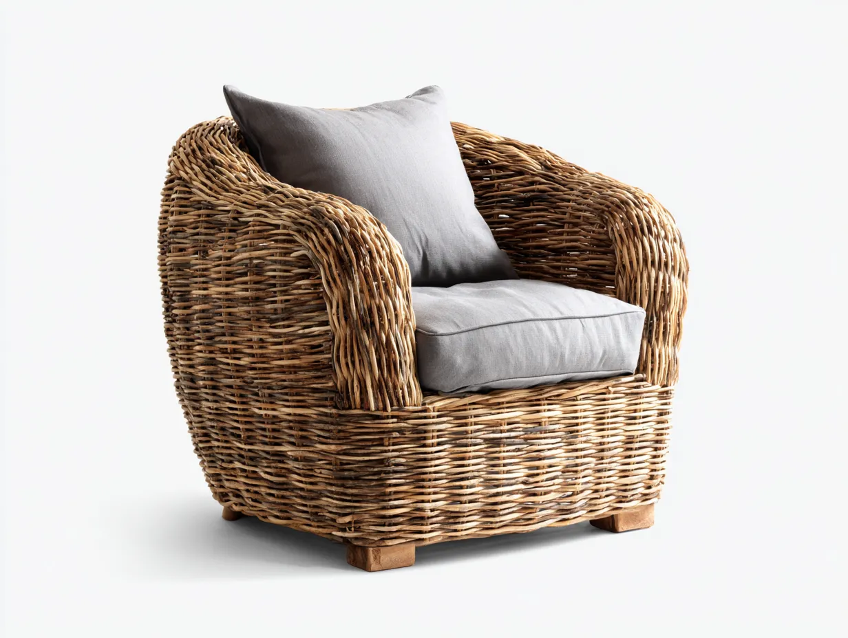 Wygodne siedzisko i komfortowe podłokietniki wspierają odpoczynek podczas czytania książki, relaksu lub spokojnych spotkań przy kawie. Zwarta konstrukcja ułatwia ustawienie mebla w różnych częściach pomieszczenia. Naturalna struktura rattanu ociepla przestrzeń i tworzy przyjazną atmosferę.