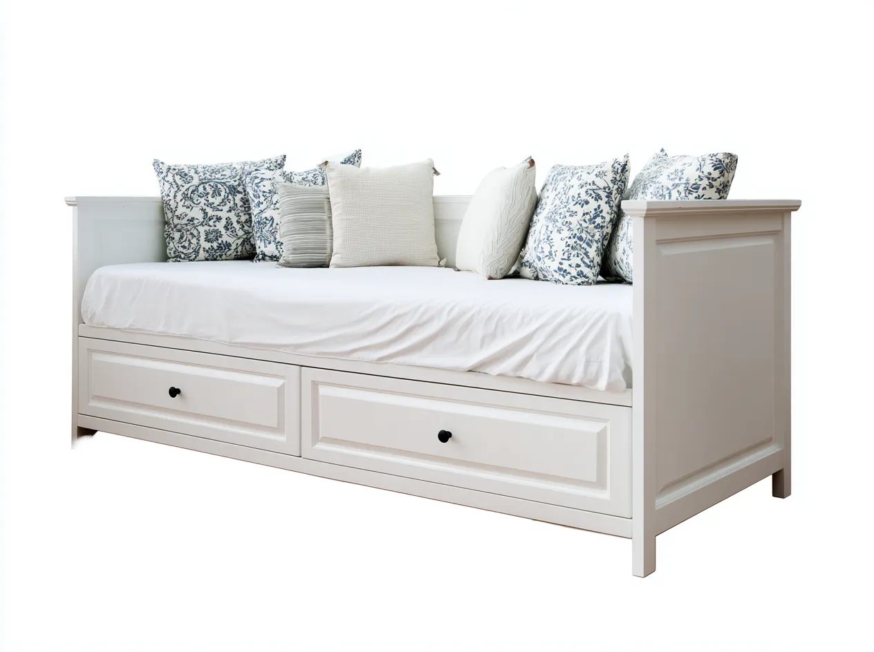 Sofa z funkcją spania-drewno-tkanina-207x94x91 cm-biały-niebieski-kremowy-styl nowoczesny